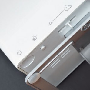 Easy to operate control buttons are located out of sight on the underside. Cool indicator lights switch from blue to red when the water tank is empty.