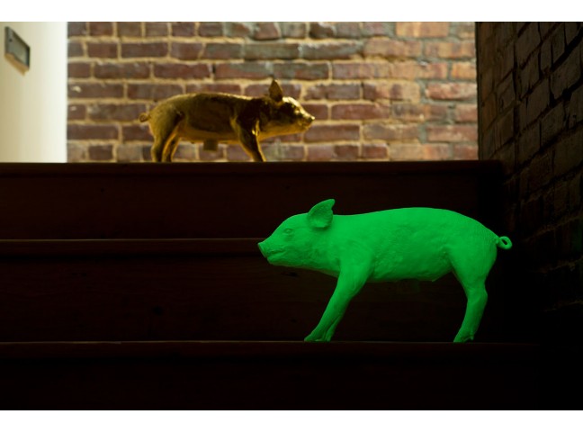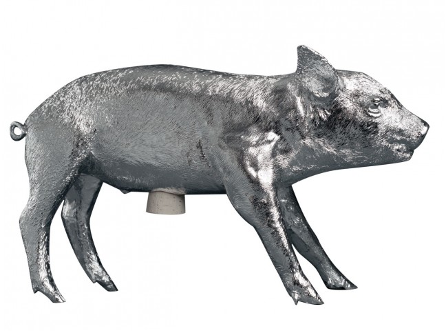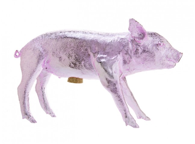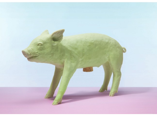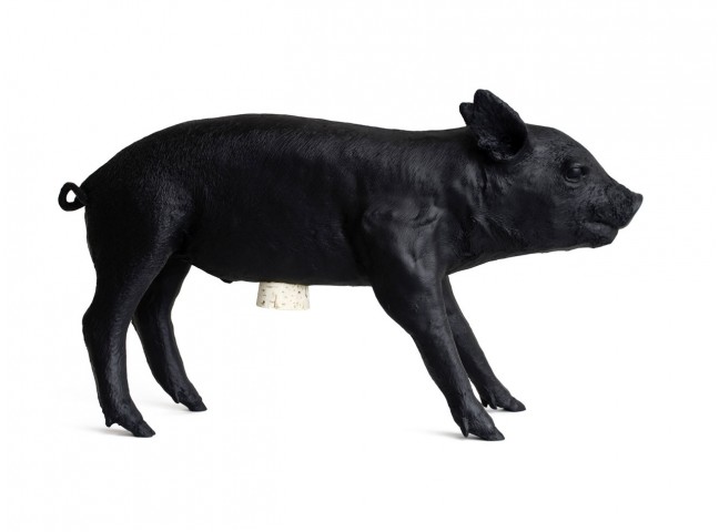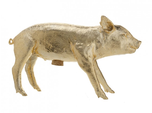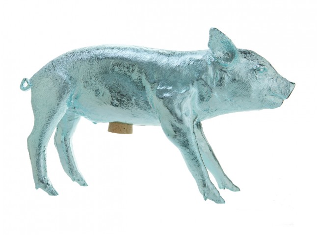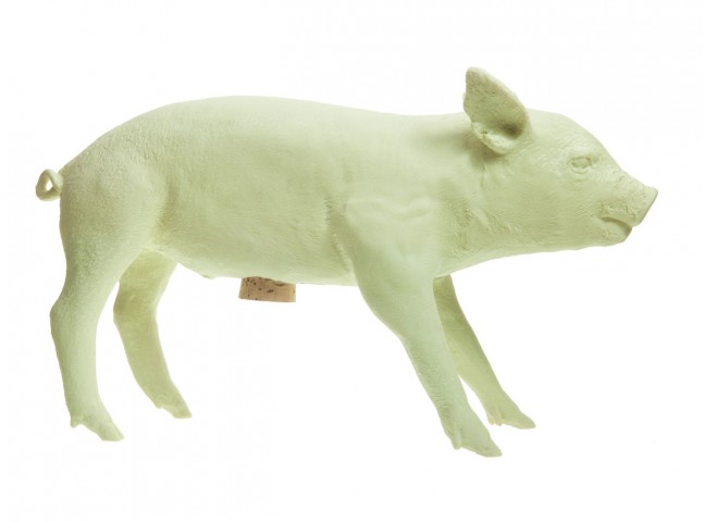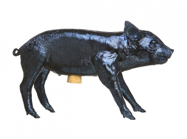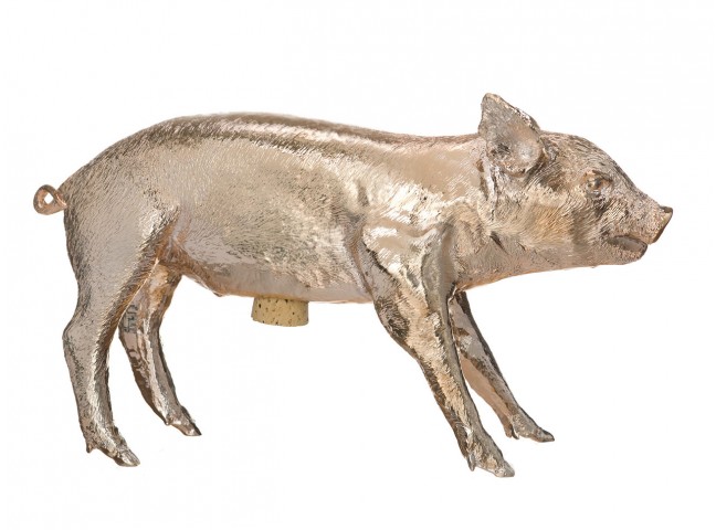 A bank cast from a pig that died a natural death. Cork stopper. Will hold more than $10000 in bills.