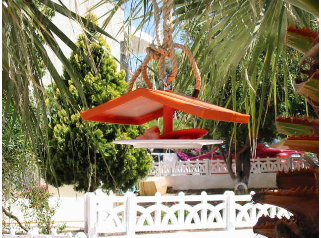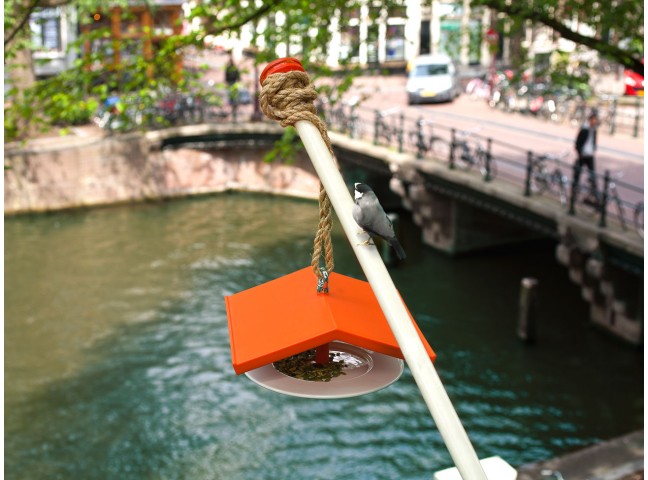 Birdhouse improves the birds’ etiquette by letting them eat from a porcelain plate.