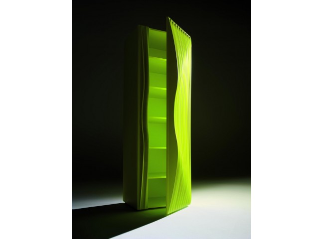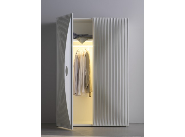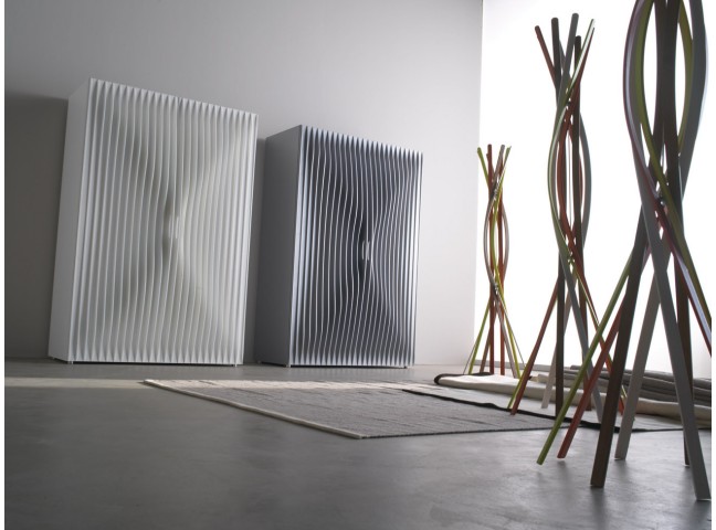 Karim Rashid's Blend wardrobe features doors with evenly-spaced think sheets of MDF, which together create a sculptural, dynamic effect.