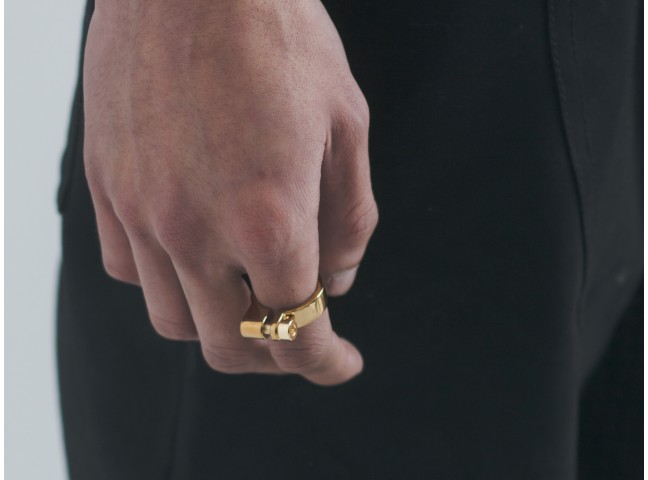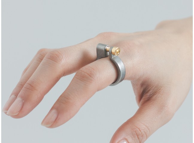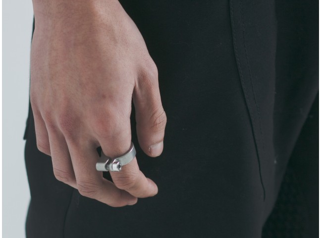 One of two rings in the collection, type b is made out of stainless steel, and features a one-piece construction with an exposed screw. Wear it on top to show off the hardware.
