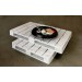 A low table in the shape of a shipping pallet, made in Italian marble.