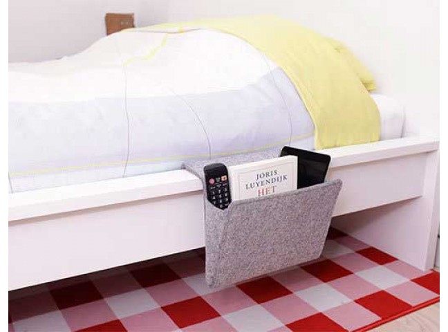 Convenient and stylish caddy fits all beds and couches. Simply slide the back flap vertically between mattress and bed frame or horizontally between mattress and box spring.
