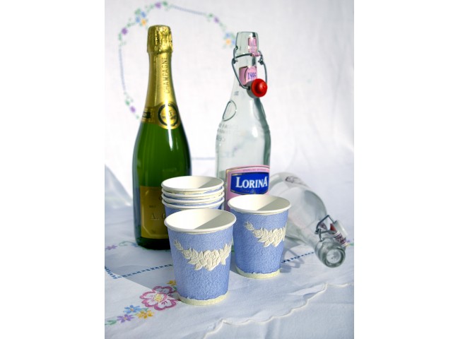 Made from cast sheets of handmade paper, these cups emulate Wedgwood’s iconic range using stained dyed paper and embossed relief details in white.