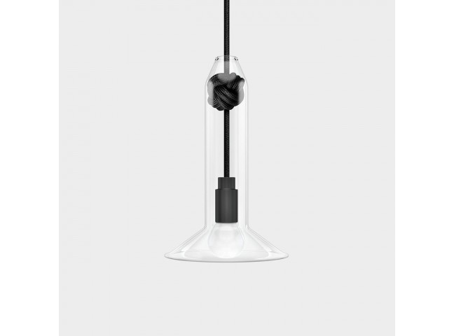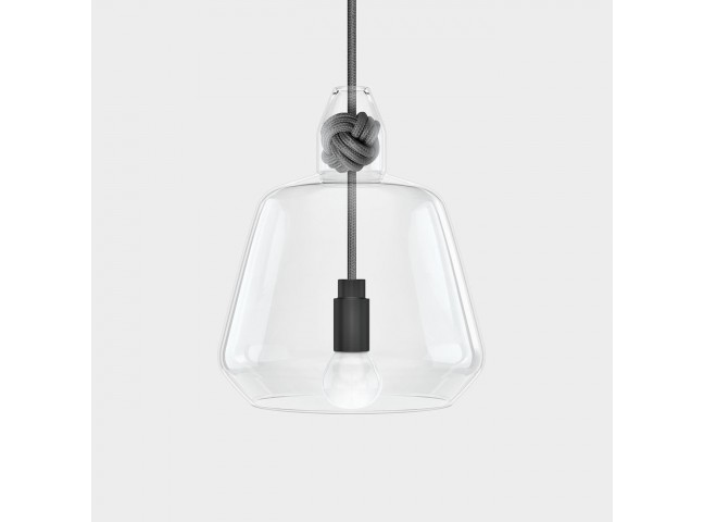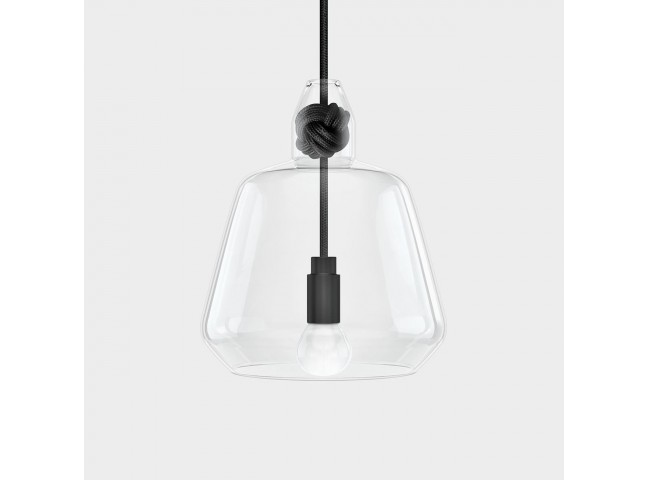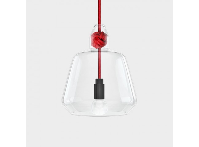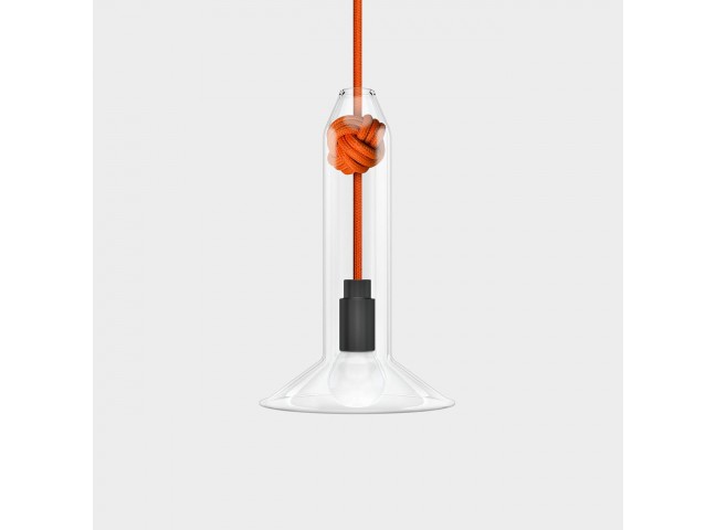 Hand-Blown glass shade supported by a unique 'Monkey Fist' knot. The knots are tied from brightly colored cable in a selection of 6 vibrant colors.