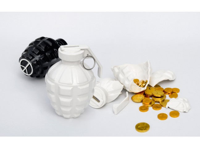 Part of a series of anti-war pieces designed by Biaugust, love grenade is a coin bank modeled after a military grenade.