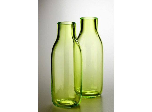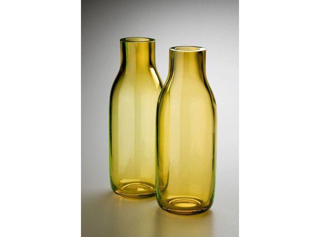 Hand blown glass designed after a milk bottle gives this vase a sleek and sophisticated dimension.