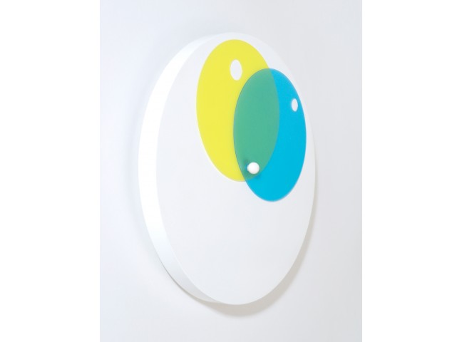 Naoya Matsuo's simple clock replaces the hour and minute hands with two circular color fields. When they overlap they produce intermediary shades of color.