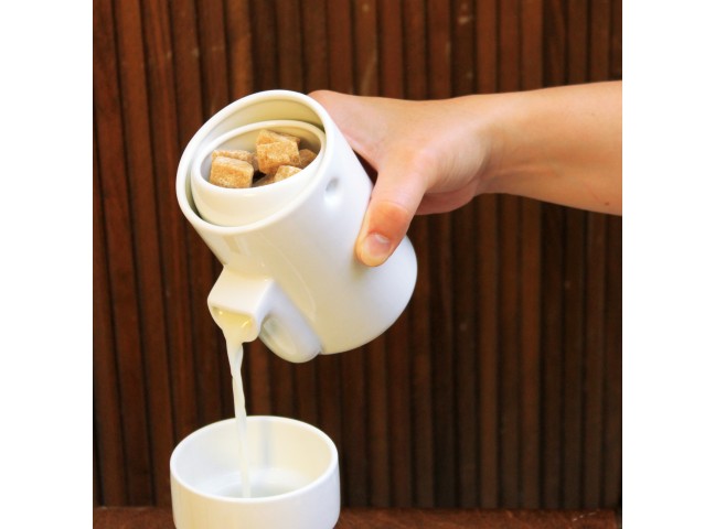 NEWTON* is a new, and much improved way of serving milk and sugar. Based on gravity, the clever mechanism inside keeps the sugar bowl level while you tip the pitcher to pour.