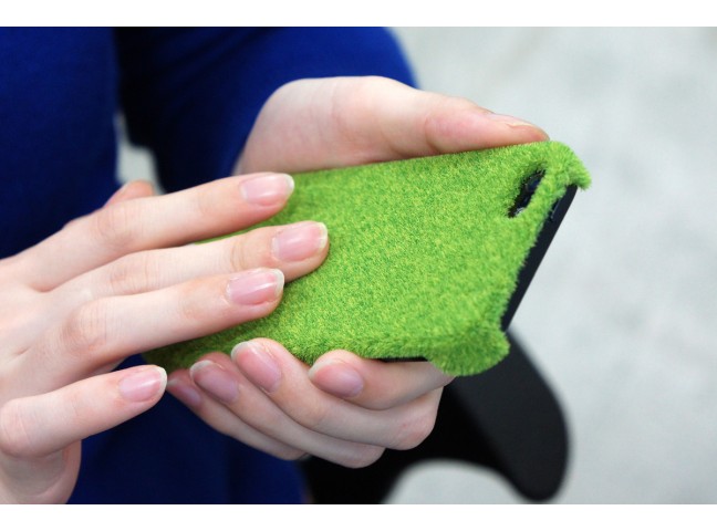 The case is made using electrostatic flocking, where five differently-colored fiber particles are dropped from above, resulting in a real grass texture that is also superbly relaxing on the eye.