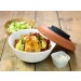 Can be used in two ways: For single person meals, use the white dish below and the terra cotta part as a lid. To make a meal for 2 to 3 people, use the terra cotta part as the dish, and white glazed dish as a lid.