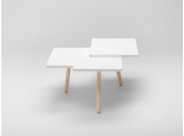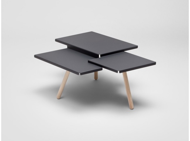 Tablefields is a coffee table produced from a single piece of sheet metal with three legs made of lacquered ash.