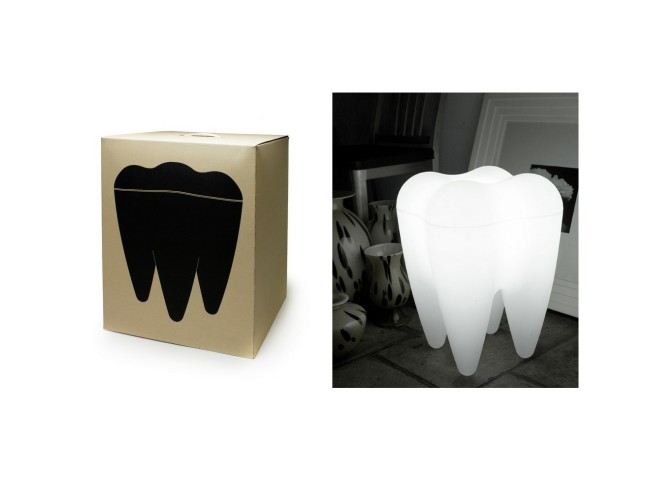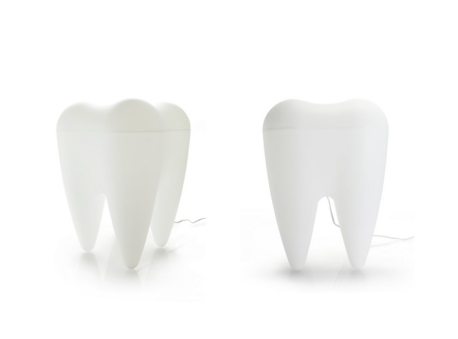 A playful floor lamp in the shape of a bright white tooth, the Tooth Lamp will brighten any room and every conversation.