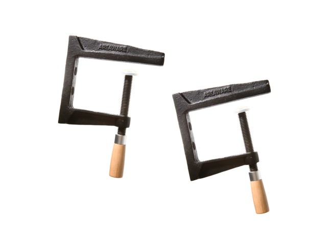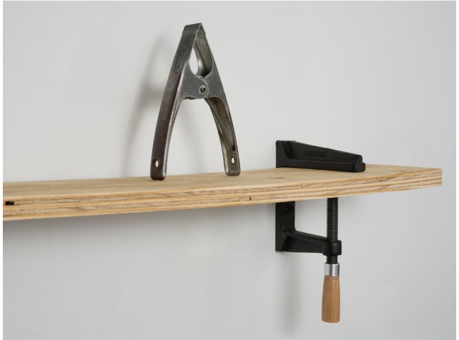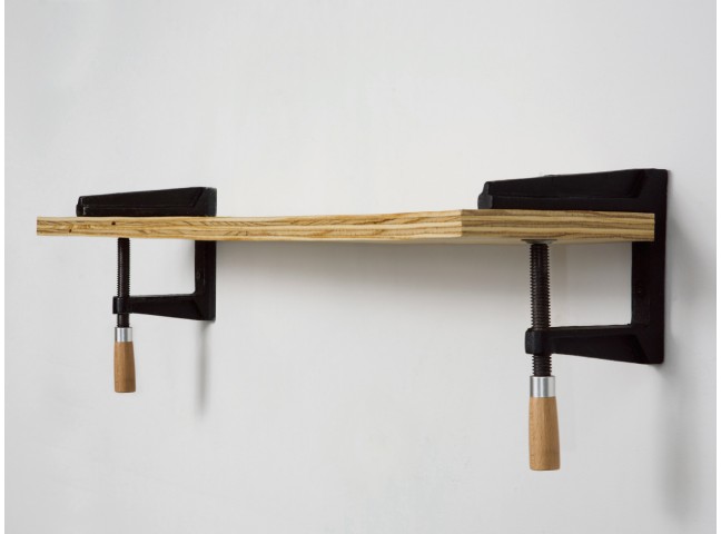 Brendan Ravenhill's Wall Clamp consists of two cast iron screw clamps that can be mounted on the wall. A board can then be placed and fixed inside ? and you have a wall shelf!