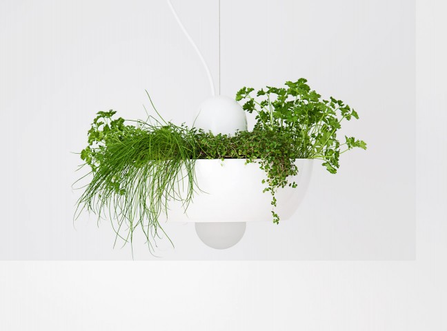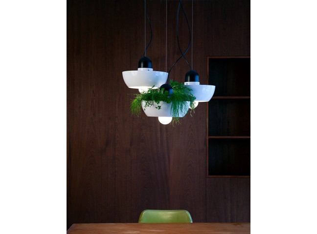 The Well Light gets its name from the 'well glass' diffuser and its pill like shape while the optional removable shade can be planted for healthy living.
