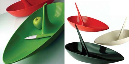 A sleek, modern fruit bowl that keeps everything in one basket, including a sheath for your knife (included). Simply pick your snack, peel it, and stick the knife back into Ap-peel's tasteful design.
