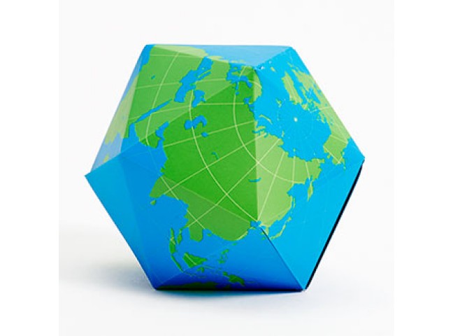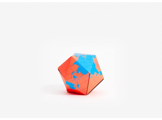 First conceived in 1946 by Buckminster Fuller, Dymaxion is a magnetic folding globe, a representation of Earth that easily transitions from flat to three dimensional. Fold it to form a geometric globe or unfold to reveal our flattened planet.