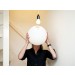 A perfect tiny chandelier suspended inside a black glass pendant.