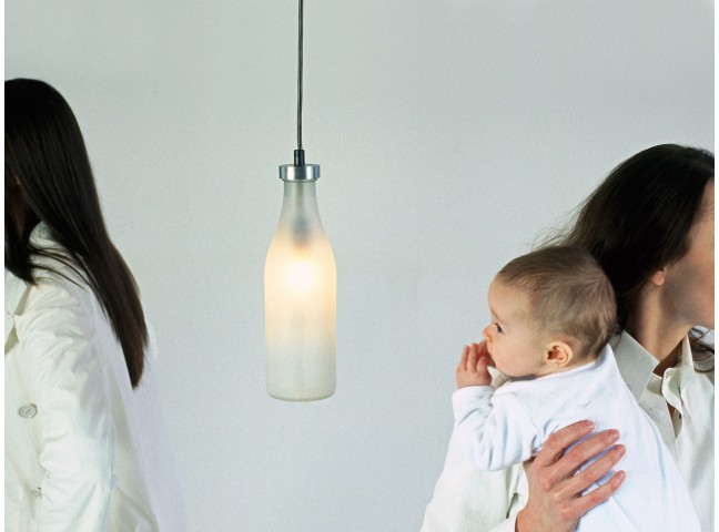 Now recognized as a classic of both lighting and environmental design, this lamp repurposes 12 standard milk bottles into a stunning lamp.