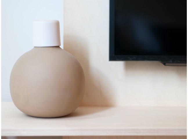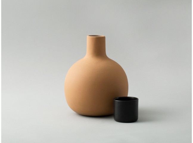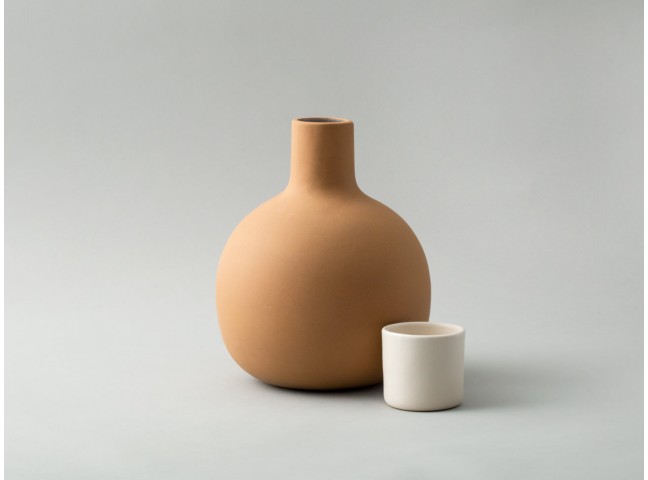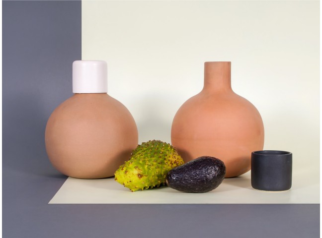 This simple and practical vessel is inspired by traditional Mexican pitchers used to store and refresh water. The top lid doubles as a cup.