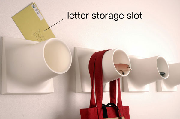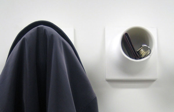 Cubby is the ultimate anywhere hook with an inner surface that lets you store items like sunglasses, cellphones, wallets, spare change, gloves, etc. The outer surface allows purses and scarves to be hung and offers a wider, more collar-friendly support for coats.