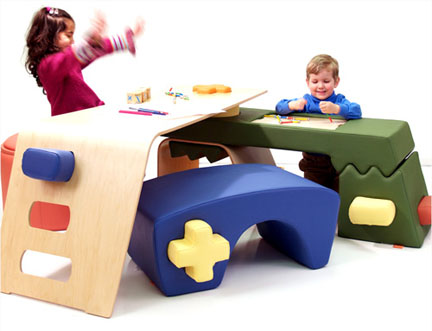 Designed for how kids like to play. The Play Table is a modular table for children: its sturdy maple componants and colourful foam pieces fit together in different configurations for multiple uses. It requires no assembly, and will provide endless hours of fun. And it looks spectacular too.