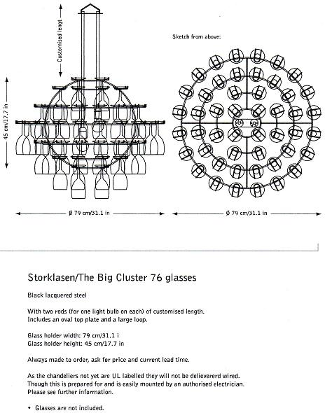 The 76-glass version comes with two rods. This chandelier is always made to order and the length of the rods are customizable. Deliver time 4-7 weeks.