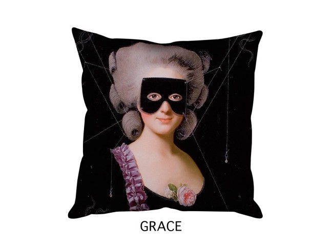 Portuguese postmodernist artist Joao Figueiredo works in acrylic with a strong black palette for maximum impact. Using half-seen fragments of older paintings, the Miss Appropriation cushions juggle modernity with tradition and infuse the whole with humor, playing with the whole concept of art and how we appreciate it.