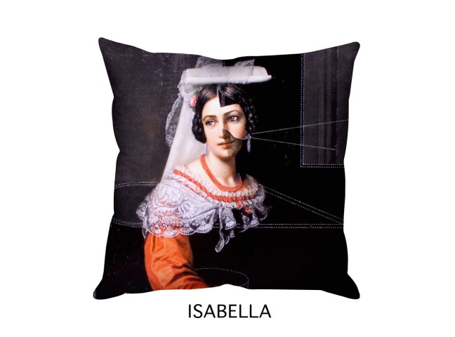 By ‘appropriating’ these traditional portraits of women of yore – and taking something away – Figueiredo has created a set of surreal cushions.
