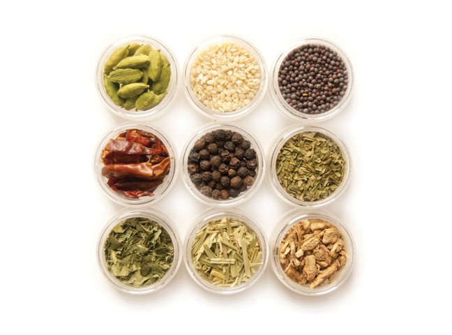 Indian:: organic cumin seed, organic green cardamom pods, organic whole cloves, organic white peppercorns, organic fenugreek, organic star anise, organic indian chili powder, organic coriander seed and organic curry leaf.