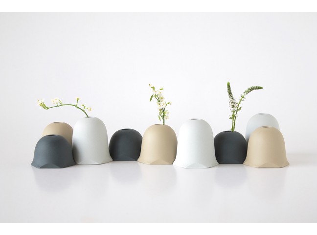 Scape is a modular vase set by Netherlands-based studio Oato. The vases are shaped like little mounds, and the hexagonal bases allow them to fit together seamlessly into a number of hilly landscapes of different sizes and colors. Each vase holds a single flower, but the vases look great empty as well.