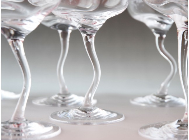 Appearing somewhat tipsy itself, William Warren's playful Drunk Wine Glass is blown by highly skilled Japanese craftsmen, "but only after they'd been drinking wine".