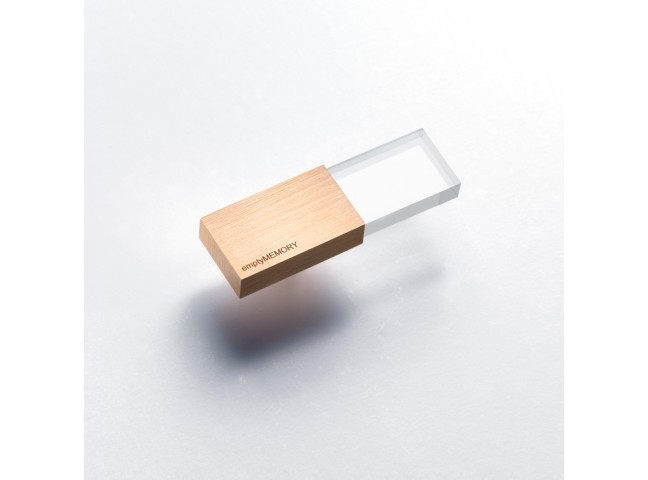 This USB stick features a transparent rectangular form.