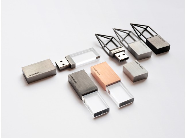 Cast in high-quality 316 stainless steel, each 16GB USB memory stick is hand-polished by craftsmen and finished with various colors. Each design in the series features a unique empty structure at one end, playing on the metaphor of a blank space which can be filled with your own memory.