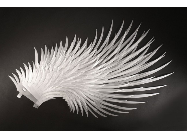 A light shade in the shape of falling feathers.