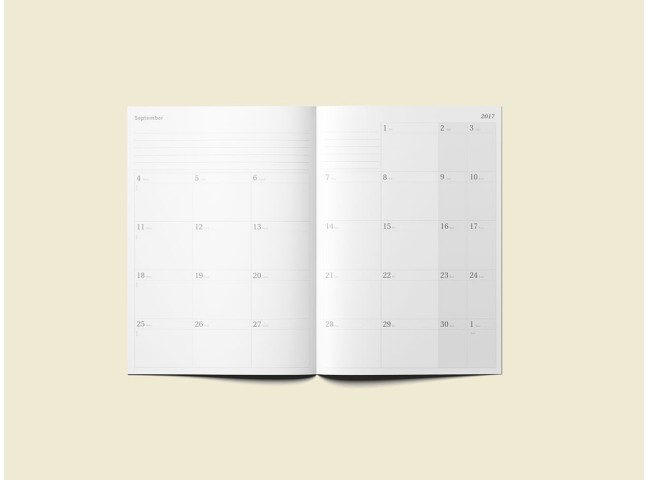 Octavi Serra's monthly planner starts in September 2017, and ends in August 2018. If you don't want to wait till January to take charge of your schedule, this one's for you.