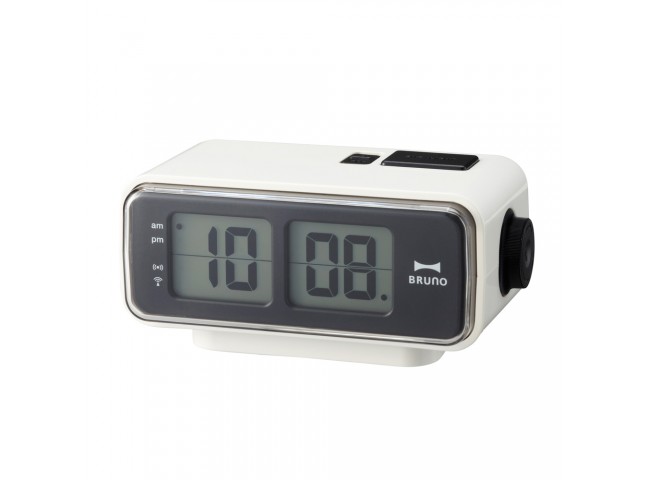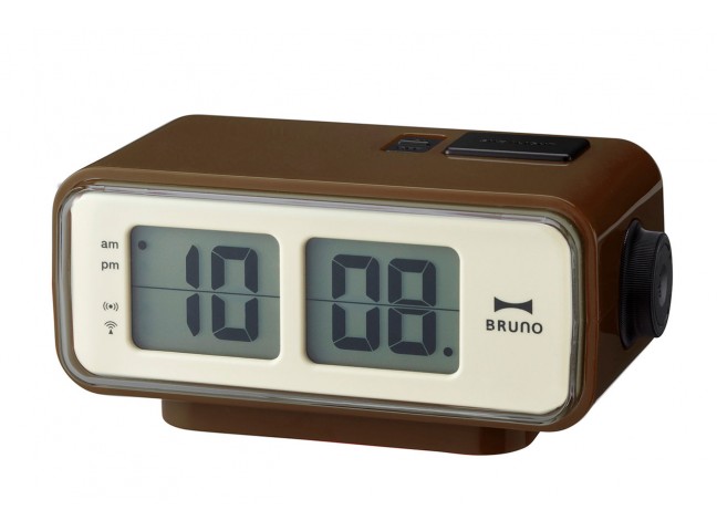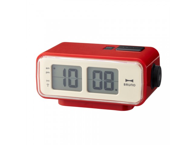 desk. Though fully digital, the changing of the time mimics the scrolling motion of the old flip clocks. This battery powered alarm clock illuminates with the push of a button and comes in three nostalgic colors.