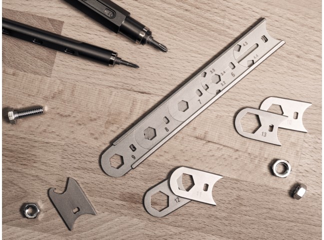 Each WRENCHit kit ships with 10 wrenches, constructed of high-grade "SUS 420 Stainless Steel" with a durable sandblasted finish.